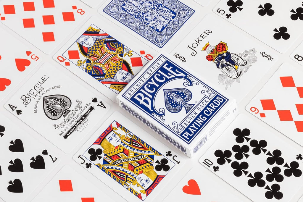 Celebrate Victorian-era excellence with the Bicycle Archive Series #4 - Acorn Back 1891 Playing Cards—an authentic reproduction of one of the earliest designs produced by the United States Playing Card Company, featuring intricate acorn and leaf motifs that exemplify the ornamental design sensibility of the 1890s.