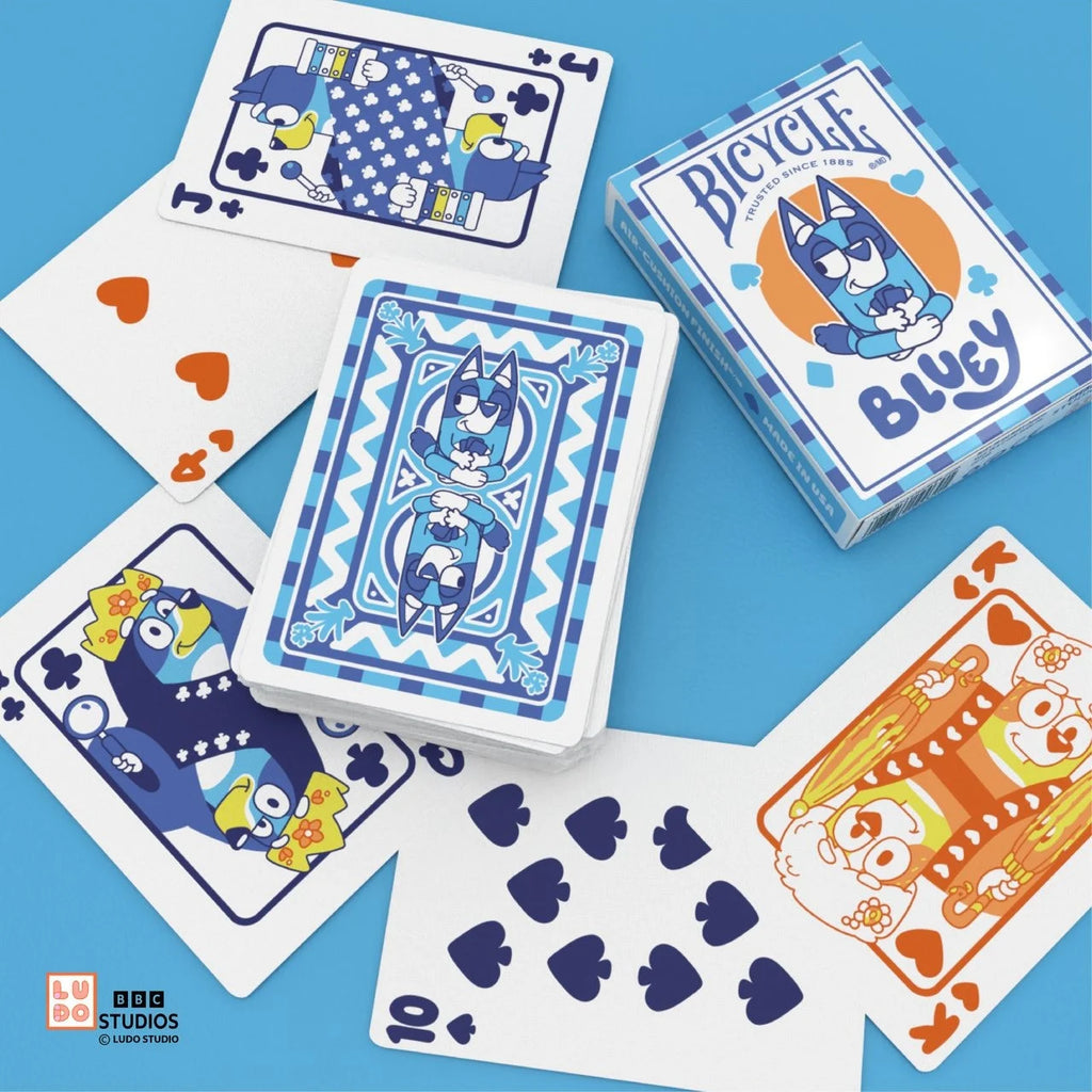 Bicycle Bluey Playing Cards bring the playful world of everyone’s favorite Heeler family straight to the tabletop, turning a classic deck into a burst of color, character, and “for real life” fun. Officially licensed and printed by the United States Playing Card Company, this cheerful deck blends Bluey’s imaginative energy with the trusted handling and durability that have defined Bicycle for generations, making it a perfect fit for family game nights, playdates, and kid-friendly collections.