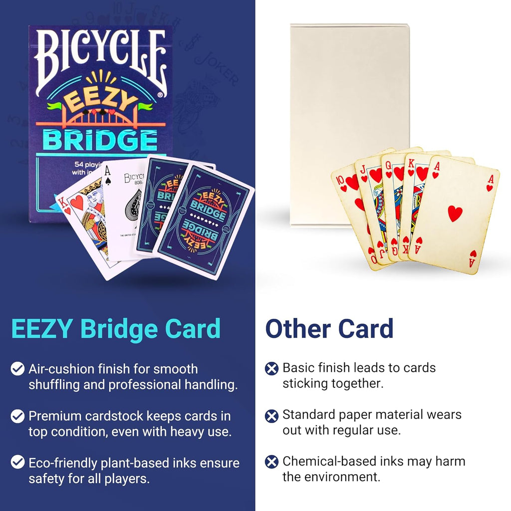 Make bridge more accessible, enjoyable, and rewarding—whether you're playing at the kitchen table or at your local club—with the Bicycle EEZY BRIDGE deck that combines over a century of Bicycle quality with innovative learning features.