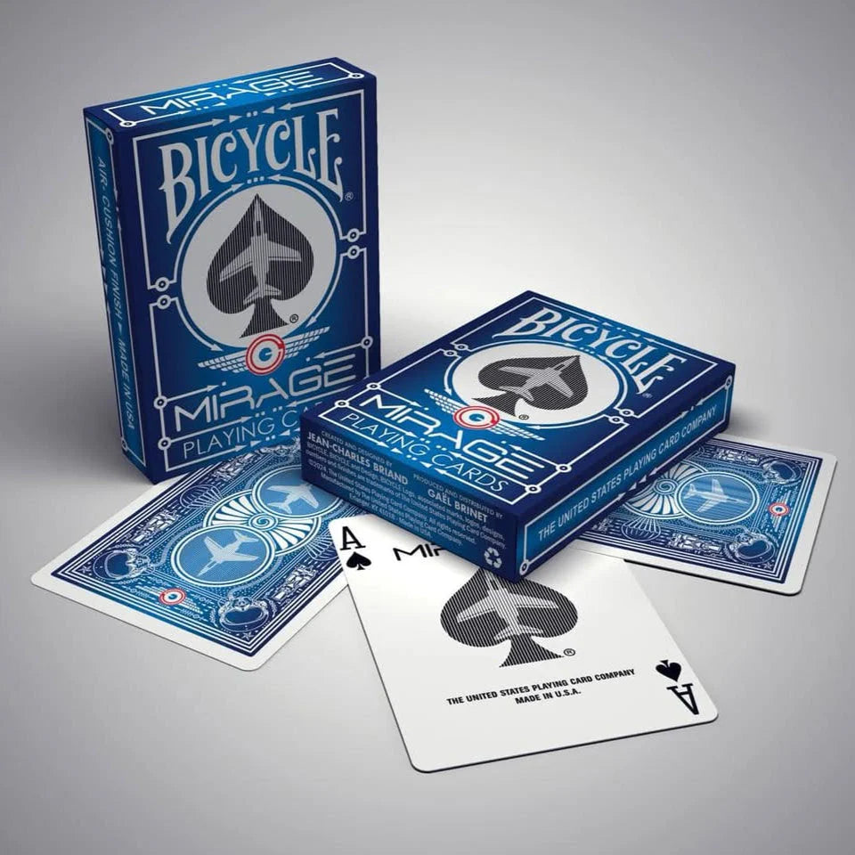 The Bicycle Mirage Limited Edition transforms the ordinary deck into an aviation masterpiece, combining French design sensibility with American manufacturing excellence. Each card invites you to experience the romance and adventure of flight with every shuffle, fan, and deal.