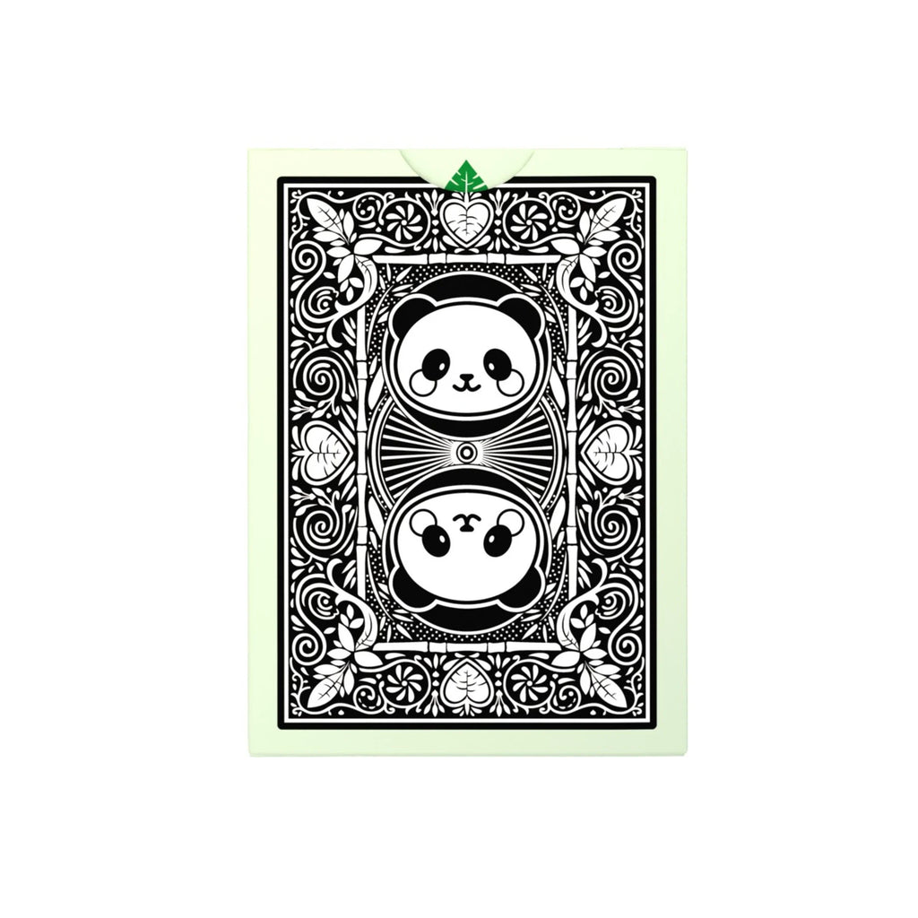 Beyond the adorable court cards, this deck features hand-drawn custom artwork with panda facts on the advertisement card and a unique design where each pip card contains a corresponding number of pandas—making every card in the deck a delightful discovery. The custom-designed panda head card backs feature a black-and-white color scheme inspired by these iconic mammals, while leaf-themed pips add botanical beauty throughout the deck.