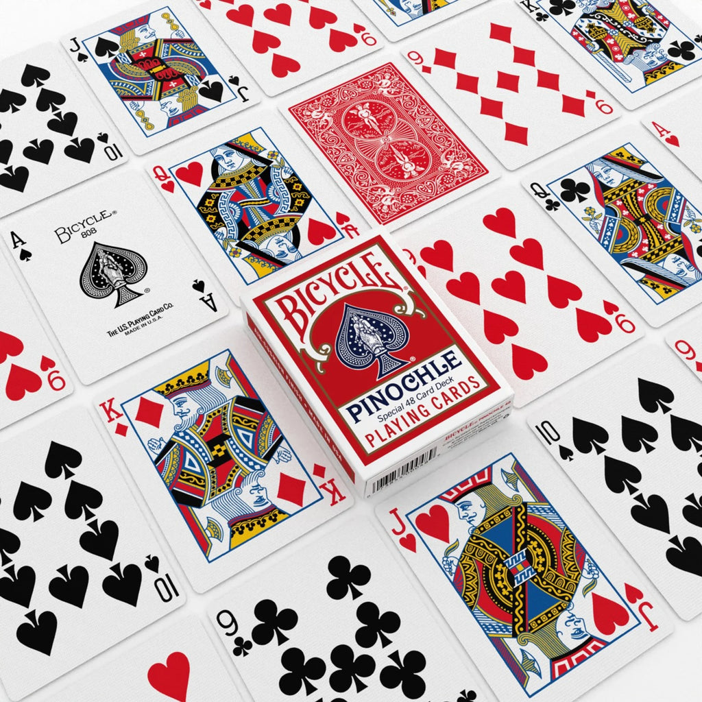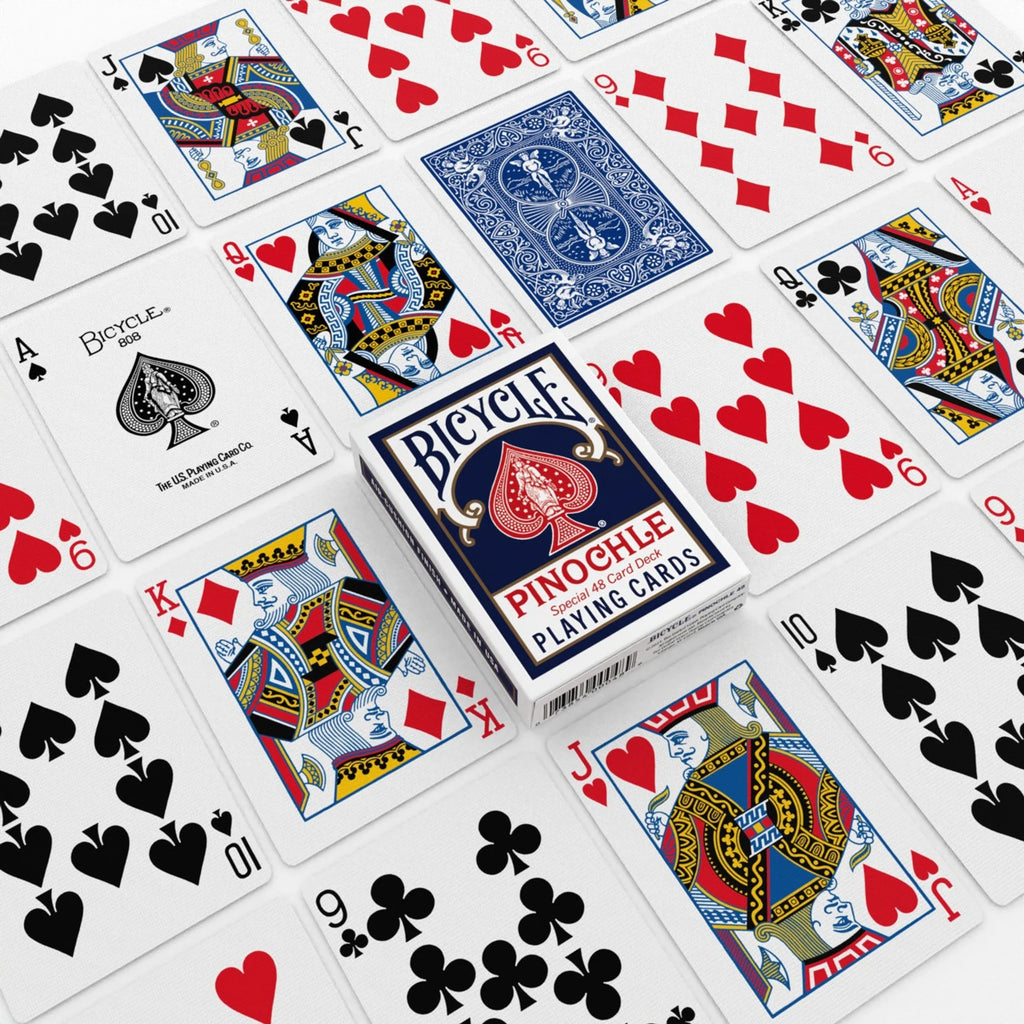 With a clear standard index, these decks ensure every meld, bid, and trick is easy to follow and enjoy. Each deck is specially formatted for pinochle, containing 48 cards (two each of 9, 10, J, Q, K, and A in all four suits), and made with Bicycle’s premium card stock for durability, smooth shuffles, and reliable deals. Perfect for pinochle clubs, duplicate play, tournaments, and collectors who want quality in quantity.