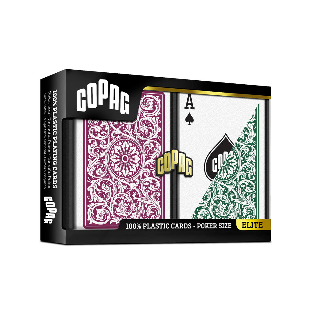 The Copag 1546 Poker Size Regular Index (Burgundy & Green) set brings classic casino styling and Copag’s famous durability to your home game or card room. This double‑deck set includes one burgundy‑back and one green‑back deck in the iconic 1546 pattern, both in standard poker size (2.5" × 3.5") with traditional regular indices for a clean, familiar look on every card.