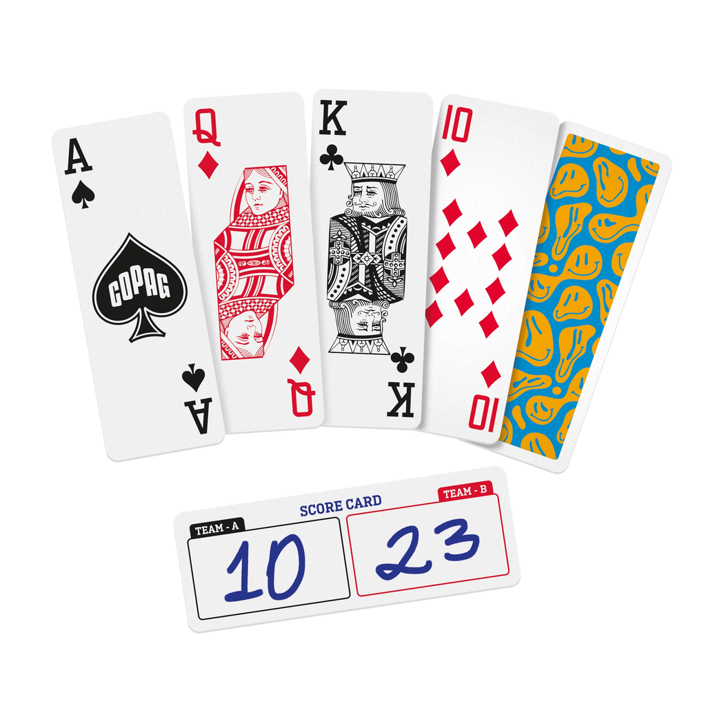 The Copag Go Deck – Smiles Design is a compact, travel‑friendly deck that combines Copag’s 100% plastic durability with a fun, smile‑filled look. Each deck features a cheerful Smiles back design and standard faces with regular indices, so it plays just like a traditional deck while adding a playful twist to the table.