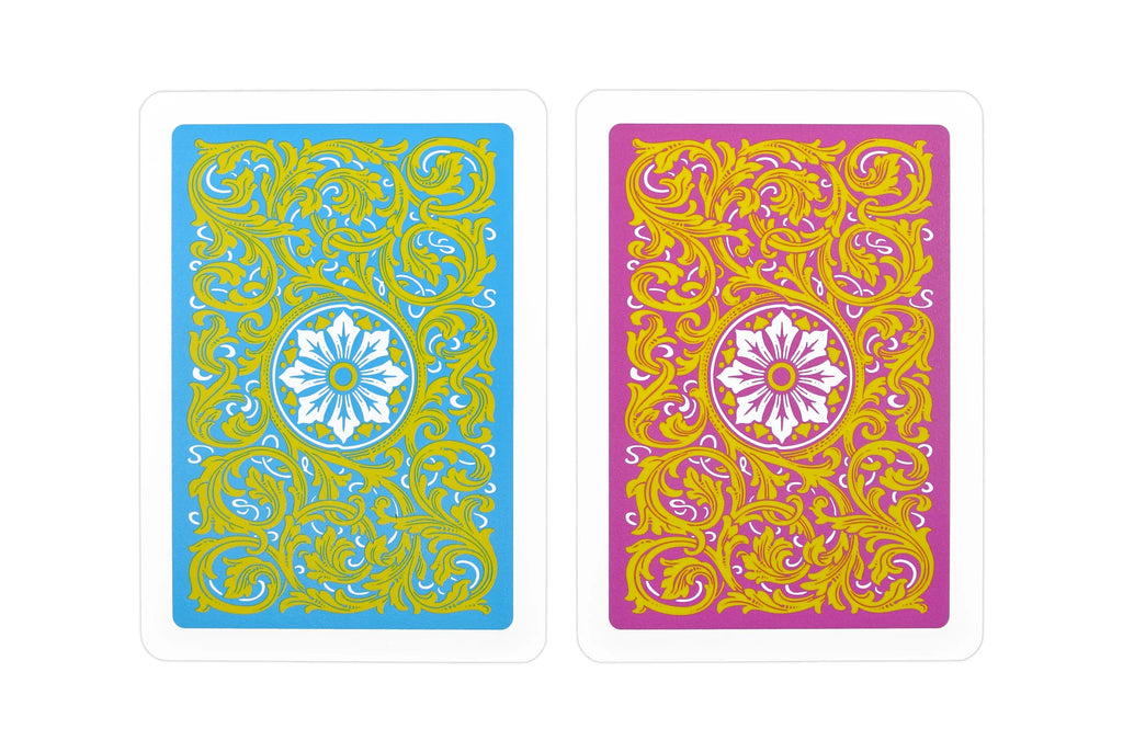 The Copag Neoteric Poker Size Regular Index (Pink & Yellow) set pairs Copag’s casino‑grade plastic stock with a bold, contemporary color palette. This double‑deck setup includes one pink Neoteric deck and one yellow Neoteric deck, both in standard poker size (approximately 2.5" × 3.4375") with classic regular indices for a clean, traditional look at the table.