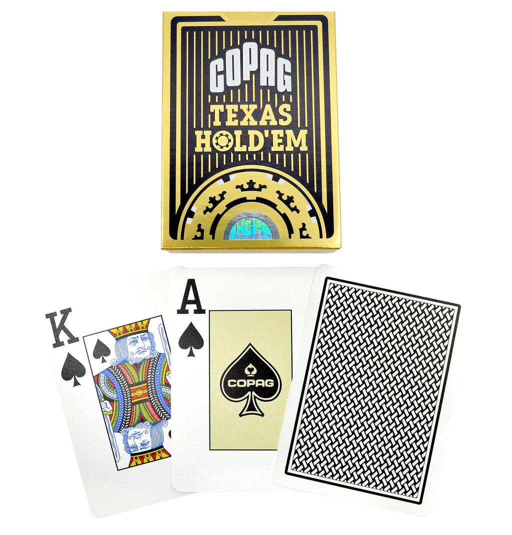 Experience the gold standard in poker gameplay with the Copag Texas Hold’em 100% Plastic Single Deck. Crafted from premium PVC, this professional-grade deck combines legendary durability and a smooth, flexible feel—lasting up to 50 times longer than standard paper cards. Designed in classic poker size (2 1/2 x 3 7/16 inches) with a jumbo index for easy viewing, these cards are fully washable—simply wipe and play, game after game.