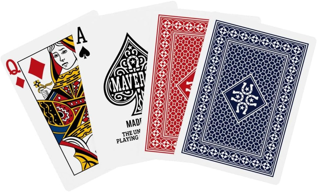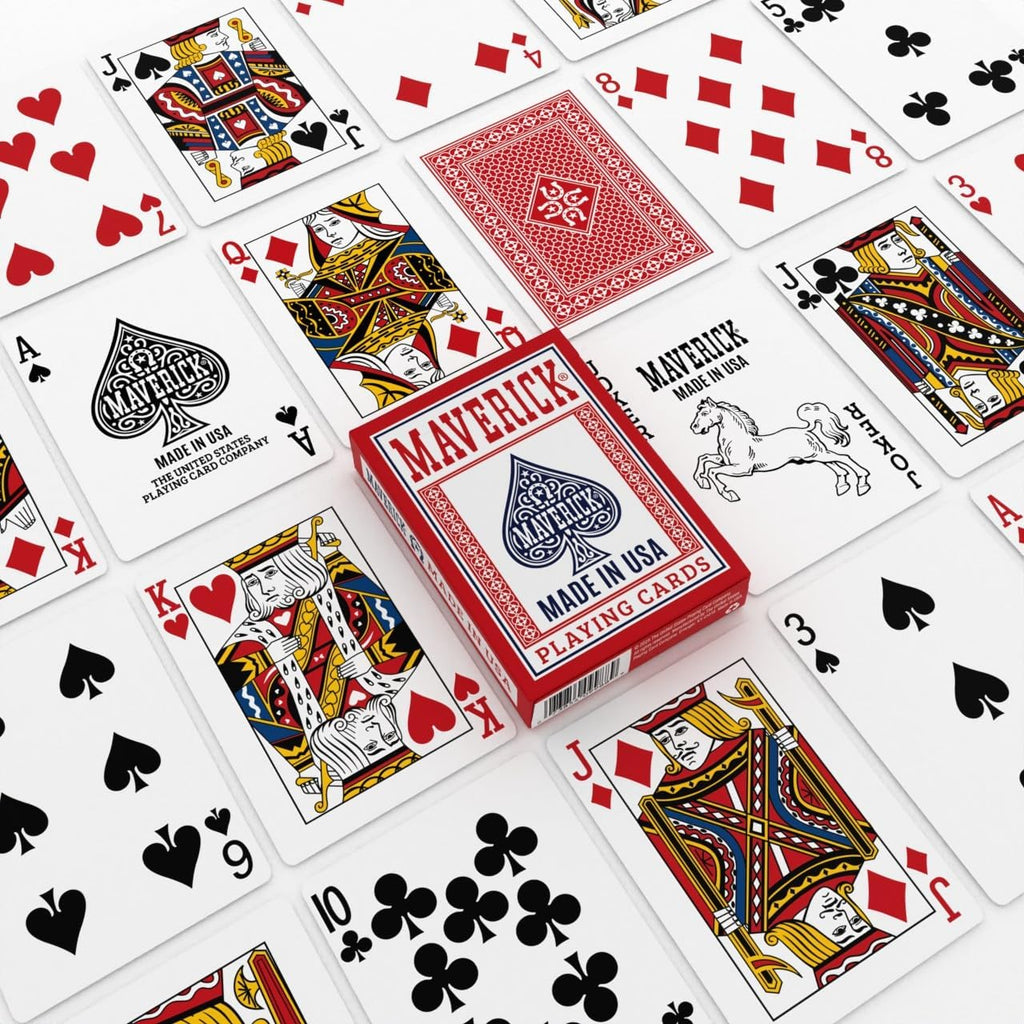 These Made in USA decks mark Maverick's return to American soil since 2001, bringing the brand back to its roots with the quality and craftsmanship associated with USPCC's Erlanger, Kentucky facility. The new back design distinguishes these USA-manufactured decks from all previous versions, making them instantly recognizable to collectors and players alike. Select from both classic red and blue backed decks in standard poker size (2.5" x 3.5") with standard index numbering. The cards feature a smooth finish for reliable handling and performance, making them suitable for poker, card tricks, family game nights, and all traditional card games.