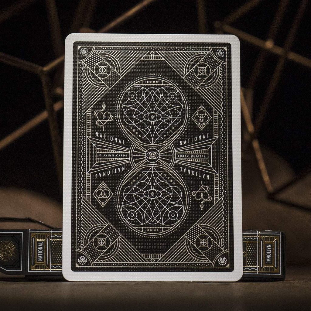 Unlock intrigue and elegance with the National Playing Cards by theory11, a deck inspired by the mystique of secret societies and the legendary artistry of the late 1800s. Each deck arrives wrapped in embossed black cardstock, covered inside and out with brilliant gold foil accents and intricate filigree—an immediate statement of luxury and sophistication.
