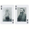 The deck captures the drama, sacrifice, and significance of the war that divided and ultimately reunited the nation from 1861 to 1865. Historical images include military leaders, soldiers, battles, equipment, and scenes from both Union and Confederate perspectives, offering a comprehensive look at this transformative period. The poker size cards measure 63 x 88 mm (approximately 2.5 x 3.5 inches), with standard playing card indices on the faces and a distinctive Civil War-themed design on the reverse.