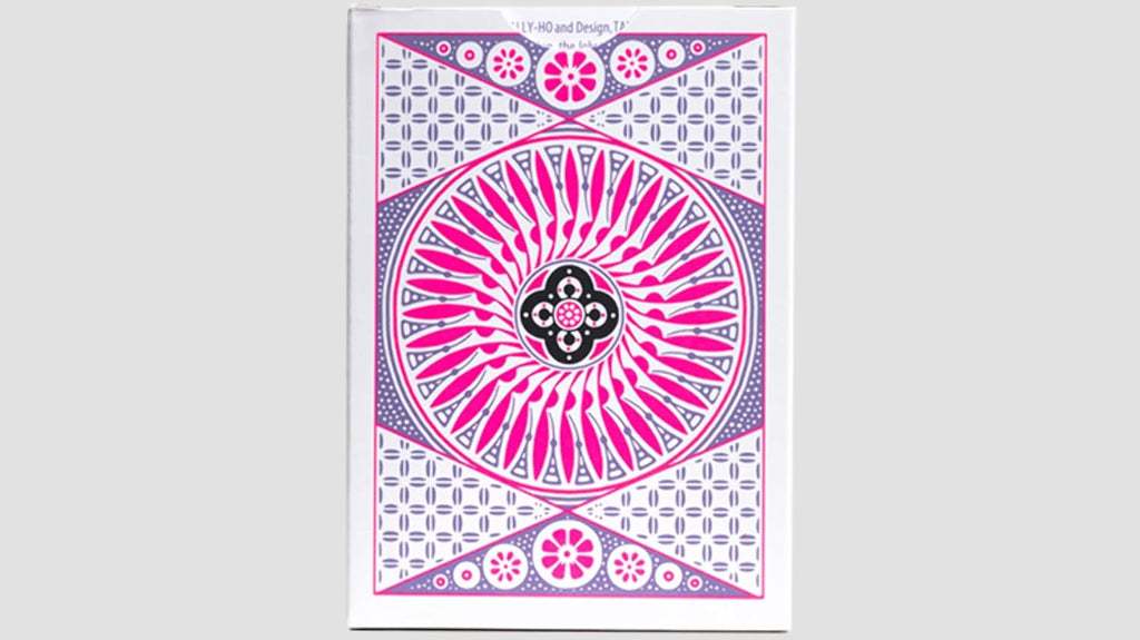 The Circle Back Heart deck features a stunning palette of neon pink and purple tones that create striking visual contrast during complex flourishes and fan spreads. Custom-designed card faces display elegant heart motifs and watermark-style designs that complement the cardistry aesthetic. The iconic Tally Ho circle back—beloved by cardists for its visual precision and performance—appears in matching pink and purple tones.