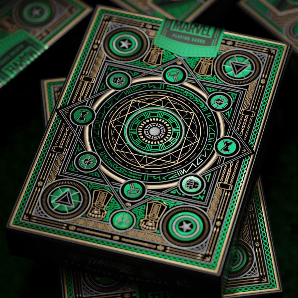 Theory11's Avengers series is a multi-deck masterpiece celebrating the eleven-year journey of the Marvel Cinematic Universe's Infinity Saga. Each deck is color-coded to represent one of the six Infinity Stones, making the Green Edition the logical home of Doctor Strange's time-bending artifact. Collectors can pursue the complete set or cherry-pick their favorite stone.
