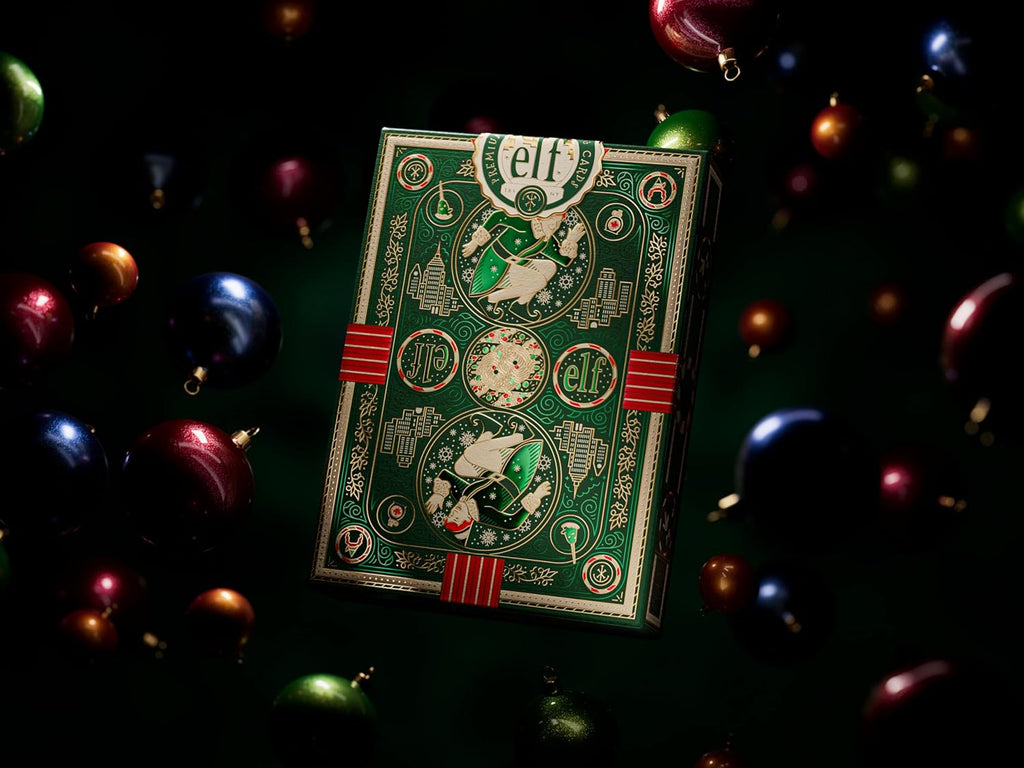 Bring the spirit of Buddy the Elf to your next game night with the ELF Playing Cards by theory11, a premium deck inspired by the beloved holiday movie! Each deck is a festive celebration in green, gold, and red foil, wrapped with hot stamping and luxurious embossing that instantly radiates Christmas cheer.